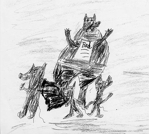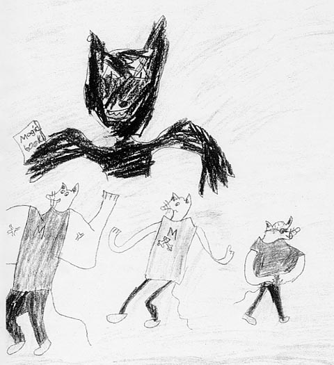 "What are you talking about?" Cheesy questioned bravely. 'It's quite simple really," the rat with the cape said, "all we had to do was put a hypnosis spell on the town and poof, they're our slaves." As he finished he laughed the cruelest laugh any of them have ever heard and held up their spellbook.
