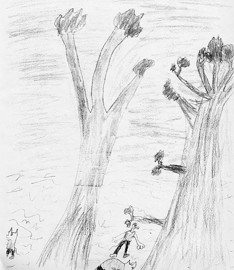 "The Mist is getting to him." Gus said. "Come on," Cheesy said, "we've got to get out of this forest before he's like this for life."