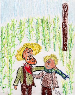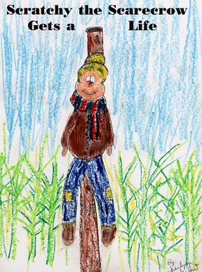Home Page or the Grades 5-8 Index, click here.Scatchy the Scarecrow looked out across the field at the clusters of homes and huts in the cozy little town of Thimblebrook. "They get everything--houses, clothes, even brains. I have nothing except this prickly pole up my back."