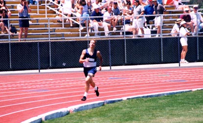 Travis was running against young men, some of which had not been beaten all year. After the first, lap he was dead last. But halfway through the second lap something happened. His pace quickened, and he began to overtake one, then another, and another, until he passed them all! His sister, Christie, said she saw him smile when he pulled into the lead.
