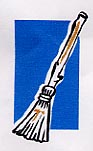 Holding her signature dustpan and broom
